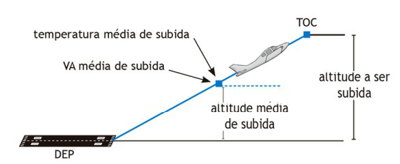 A fase de subida começa após a decolagem (DEP – Departure) e termina quando a aeronave atinge o nível de cruzeiro (TOC – Top of Climb). Durante essa etapa, calculamos dados importantes para o planejamento do voo, como: