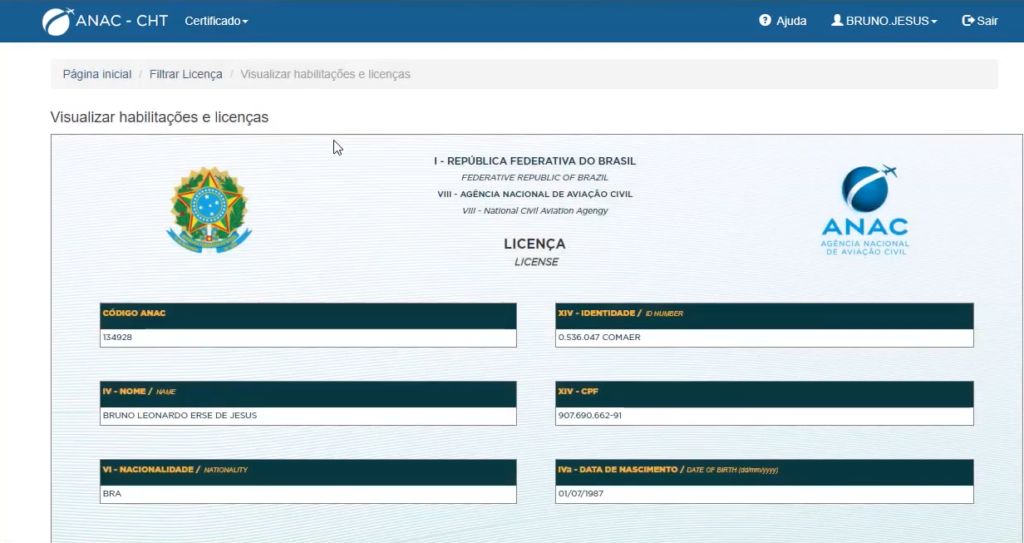 Versão online da sua habilitação. Reúne, em uma página do sistema da ANAC, todas as informações que antes constavam no cartão físico.