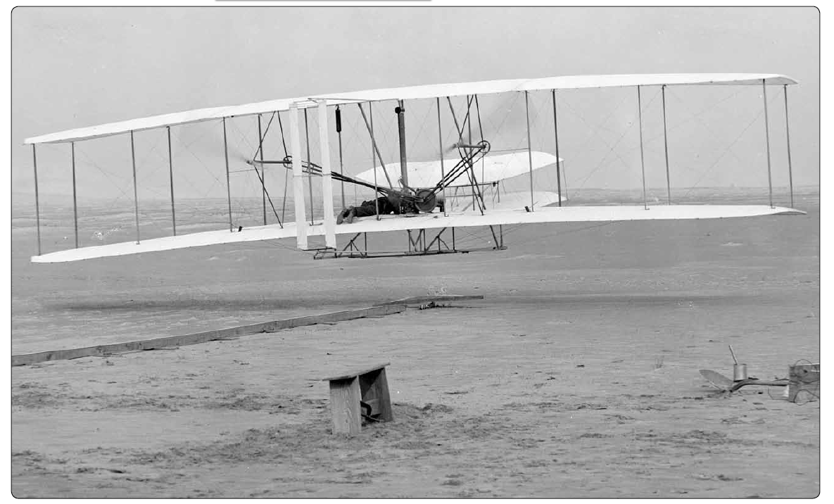 O trabalho de todos estes homens eram de conhecimento dos Irmãos Wright quando eles construíram o seu avião motorizado em 1903. Foi o primeiro deste tipo a ser tripulado, o Wright Flyer, que tinha asas finas e cobertas de tecido ligadas ao que era, primariamente, uma estrutura de treliça de madeira.