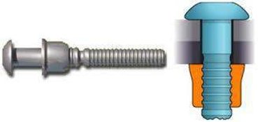 Combina características de parafuso e rebite estrutural. É instalado com ferramenta pneumática e, após montado, permanece rígido e permanente, oferecendo alta resistência.