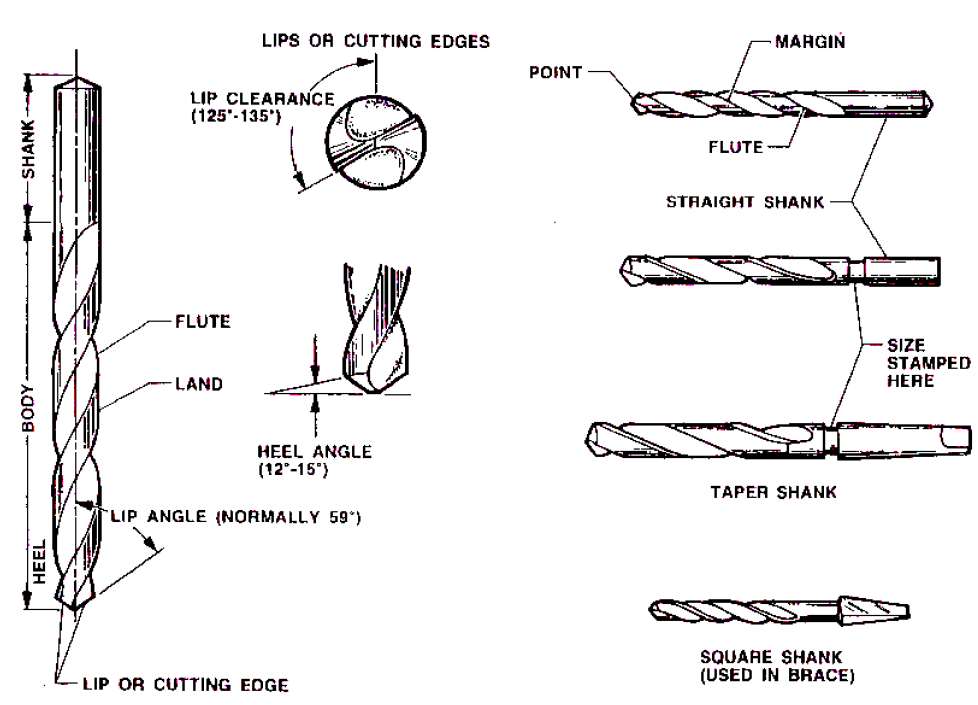 O diâmetro de uma broca helicoidal pode ser dado das seguintes formas: Fração, letras ou números.