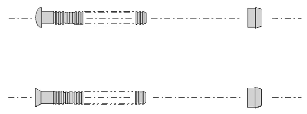 Tipo de rebite instalado por um lado (acesso único). Oferece alta resistência e é aplicado com ferramenta específica (máquina Cherry).