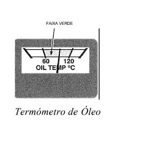 É recomendável aquecer o motor até que termômetro e manômetro indiquem valores na faixa verde, sinal de condições adequadas de lubrificação.