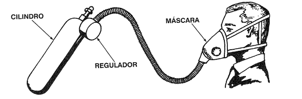 c) Máscara – As máscaras para oxigênio puro são projetadas com aberturas para permitir a diluição com ar, enquanto as máscaras para oxigênio diluído são projetadas para se adaptar hermeticamente ao rosto.