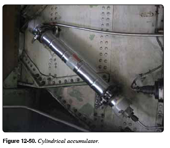 São projetados com uma câmara de ar comprimido que está separada do fluido por um diafragma flexível ou um pistão móvel. O medidor de pressão indica a quantidade de pressão hidráulica no sistema.
